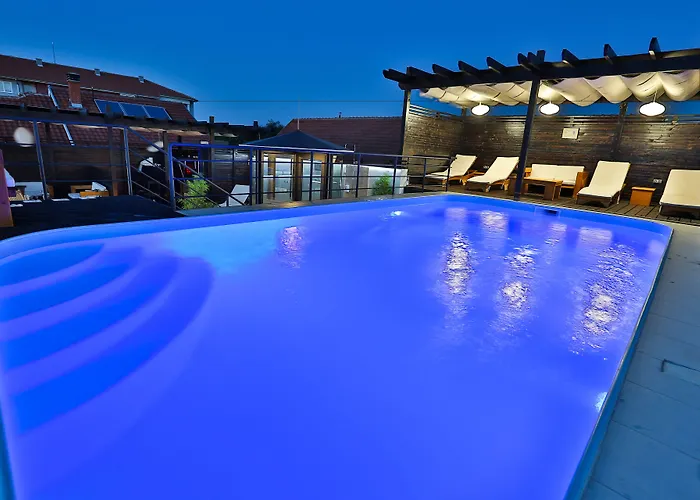 Palača Fritzy ist lediglich 25 Gehminuten vom Hotel und Duftgarten ist in circa 25 Minuten zu Fuß von hier aus zu erreichen. Die Pension liegt in einer Entfernung von 6 Minuten zu Fuß vom Kiesel- Strand.